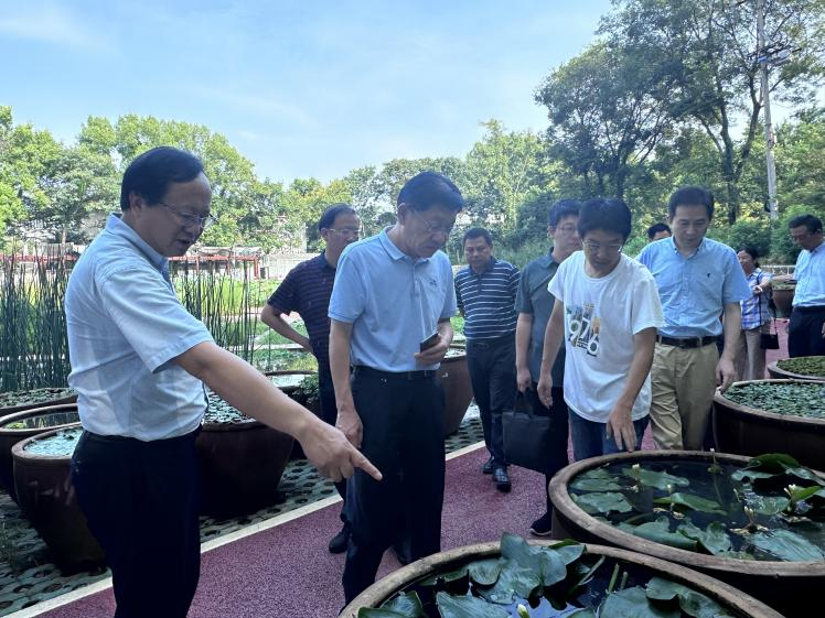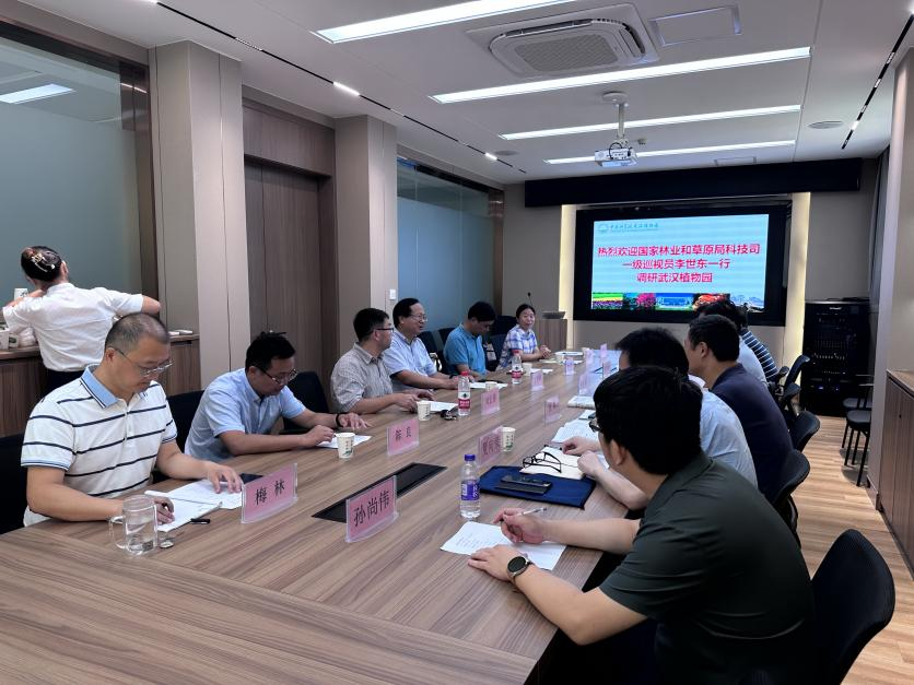 8月20日,国家林业和草原局科技司一级巡视员李世东一行调研武汉植物园,武汉植物园主任王青锋,副主任刘宏涛陪同调研。